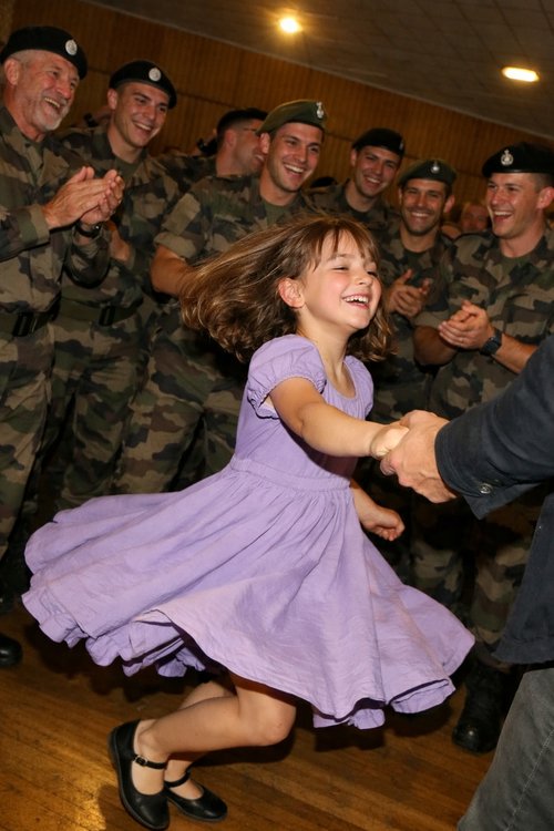 Camille serra plus fort le tissu de sa robe et baissa la tête. Et à ce moment précis, la porte s’ouvrit. La musique devint secondaire, car un homme en uniforme entra. Derrière lui, un à un, douze collègues le suivirent, tous en tenue militaire, sûrs d’eux et droits. C’était le père de Camille, capitaine de son unité, absent depuis six mois pour une mission. Il était revenu, aujourd’hui, uniquement pour sa fille, accompagné de ses camarades pour partager ce moment.