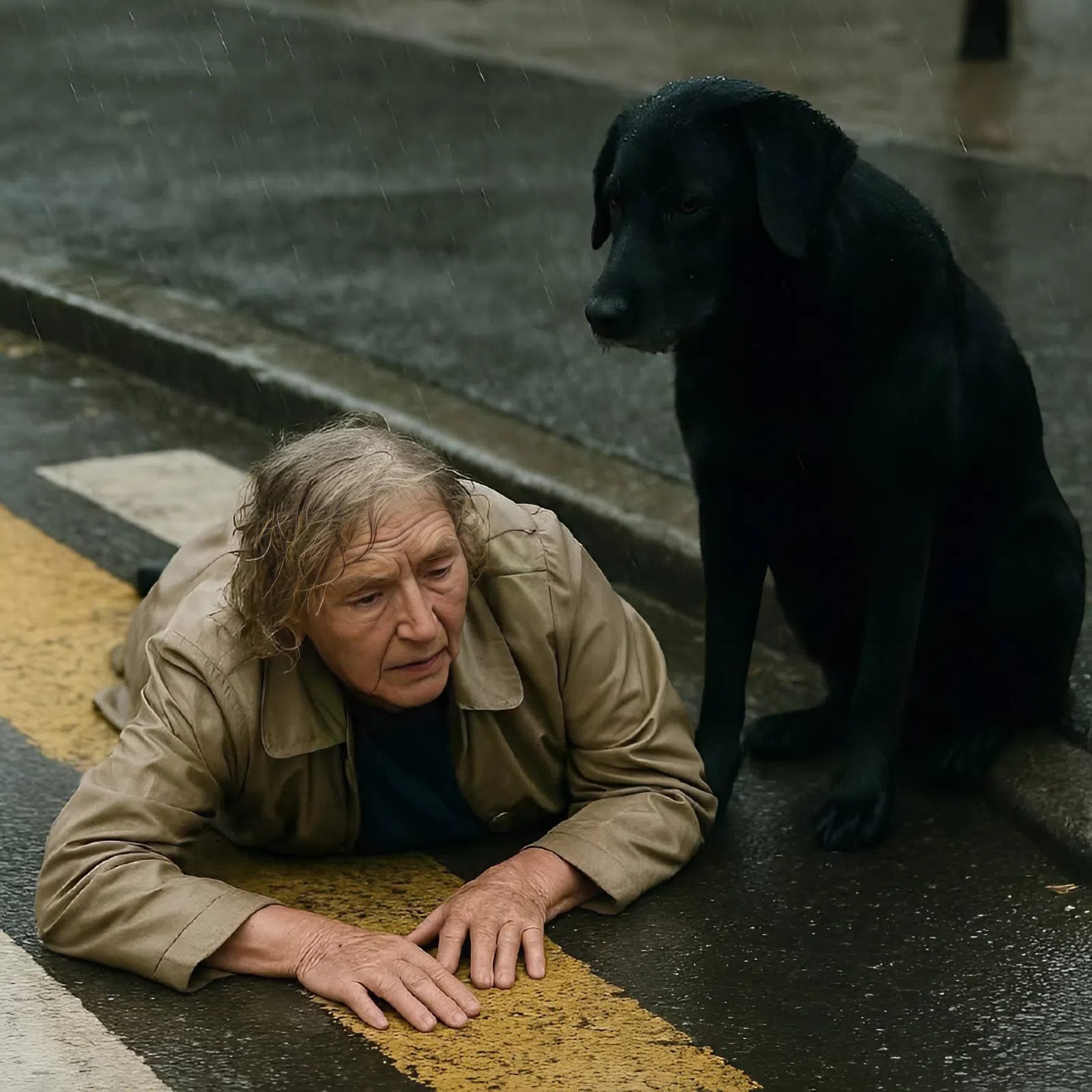 Elle ne mendiait pas. Elle ne cherchait pas d’aide avec désespoir. Elle était simplement assise là. Silencieuse. Calme. Comme si elle faisait partie de la pluie elle-même.