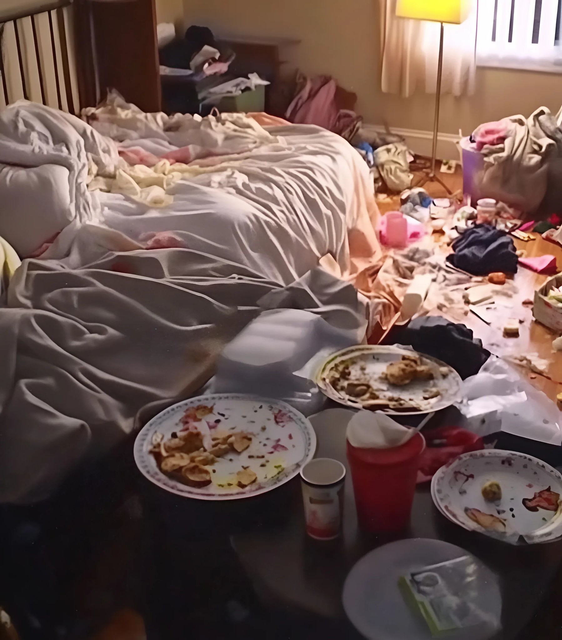 Et voilà qu’une semaine plus tard, je me retrouvais face à un véritable chaos. La vaisselle sale s’empilait dans l’évier, des jouets et des vêtements étaient éparpillés partout, et mon lit, autrefois si confortable, était enseveli sous une montagne de linge. Le réfrigérateur était vide, à l’exception de quelques restes de nourriture, et la poubelle débordait.