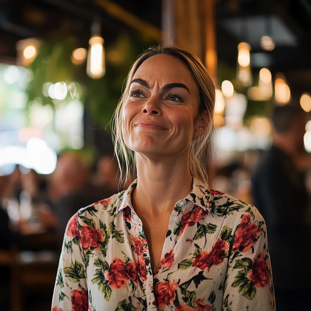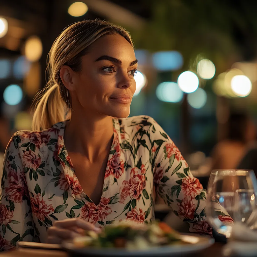 Le restaurant était bien plus chic que mes habitudes: bois sombre, lumières tamisées, serveurs en chemise immaculée. Hyacinthe m’attendait déjà, souriante, mais ses yeux restaient figés. Une tension flottait, comme si elle jouait un rôle.